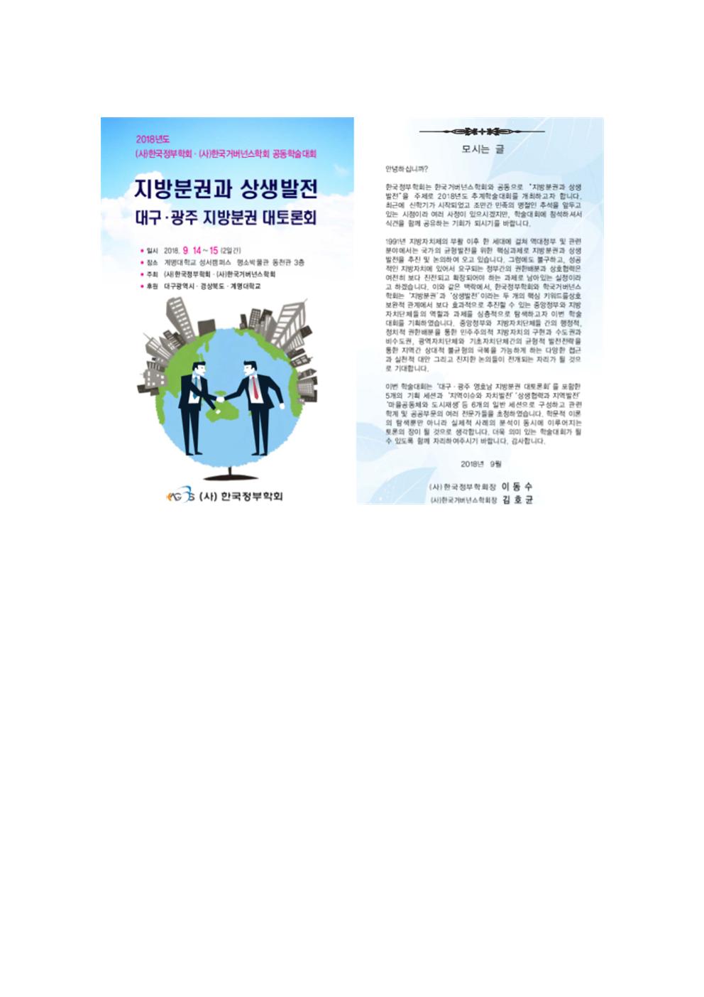 2018년도 한국정부학회 한국거버넌스 학회 공동학술대회
