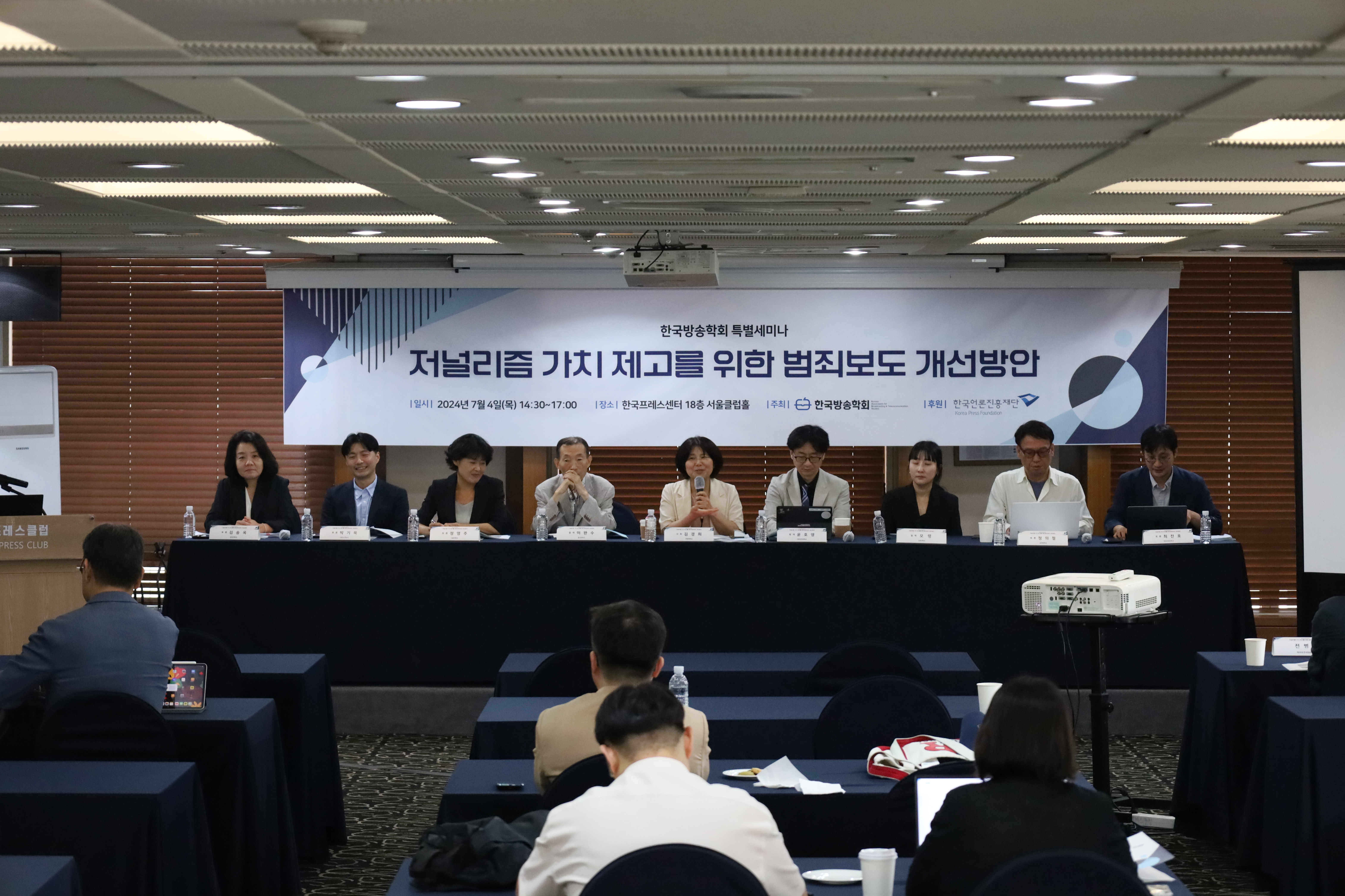 한국방송학회(학회장 전범수, 한양대 교수)는 4일(목) 한국프레스센터 서울클럽홀에서 <저널리즘 가치 제고를 위한 범죄보도 개선방안>을 주제로 특별세미나를 개최했다. 한국언론진흥재단(이사장 김효재)의 후원으로 개최된 이번 세미나는 이상 동기범죄가 급증하는 상황에 국내 언론의 범죄보도 현황을 진단하고 개선 방안을 공유하는 시간으로 채워졌다.