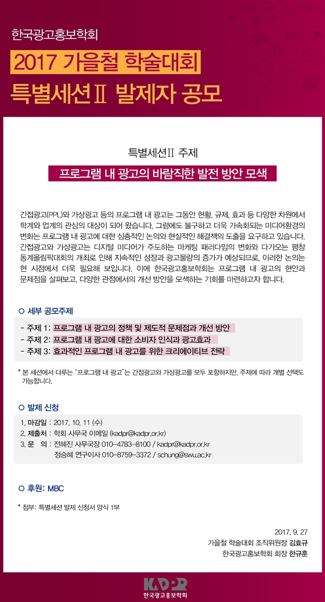 [KADPR] 2017 가을철 학술대회 발제자 공모 <특별세션 Ⅱ: MBC 후원>