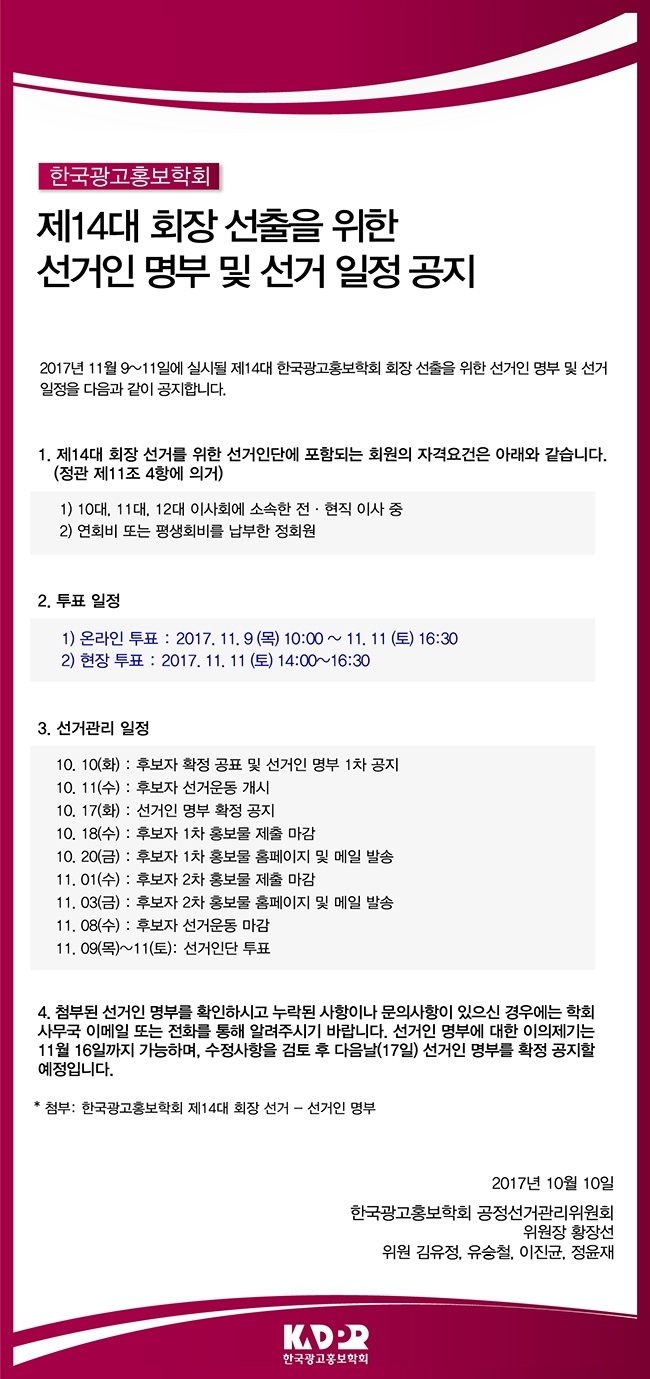 [KADPR] 제14대 회장 선출을 위한 선거인 명부 및 선거 일정 공지