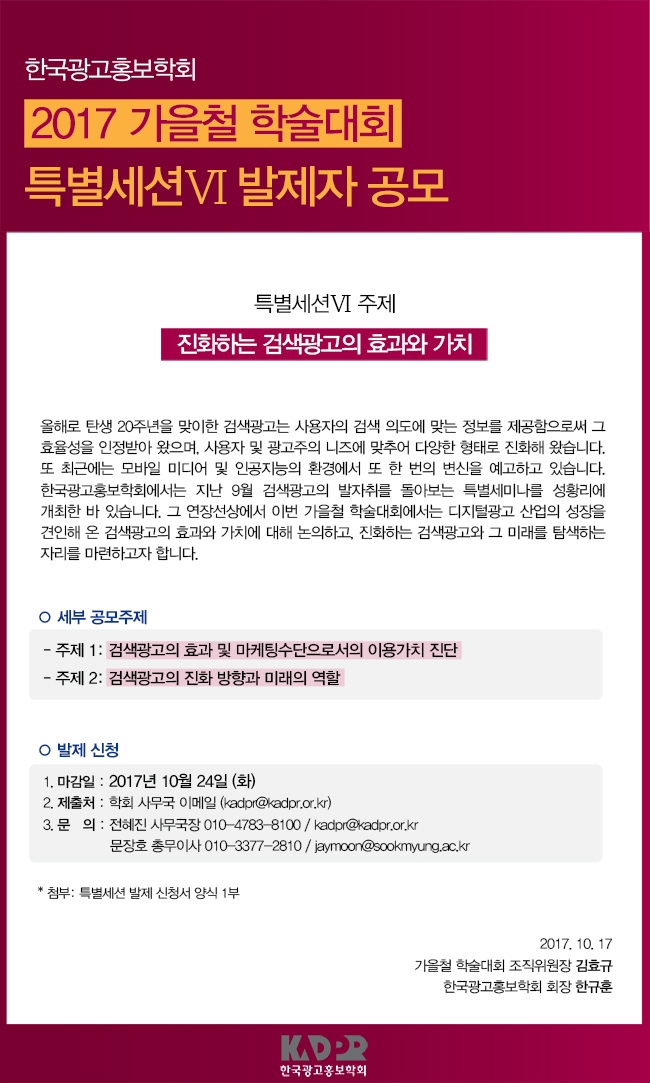 [KADPR] 2017 가을철 학술대회 발제자 공모 <특별세션 Ⅵ>