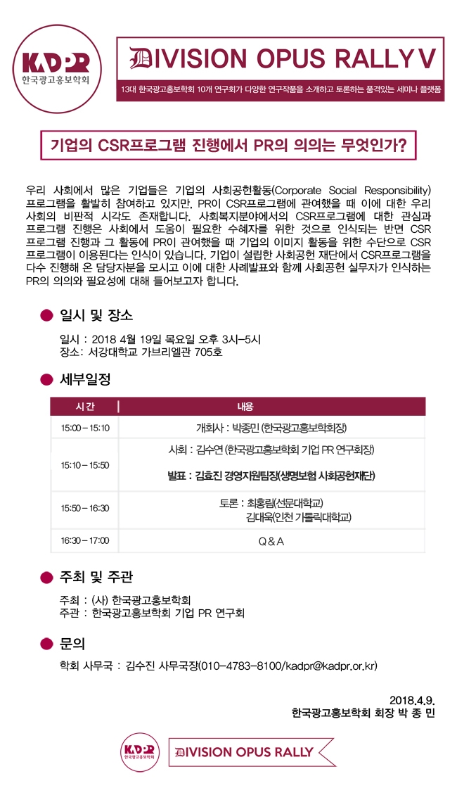 [KADPR] 2018 봄철학술대회 특별세션 Ⅴ 발제자 공모 (매체환경 변화에 따른 새로운 PR방안) / 특별세션 발제자 공모 마감 세션 안내