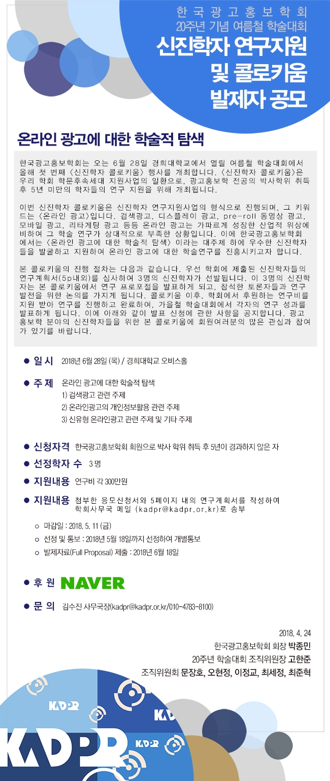 [KADPR] 20주년 기념 여름철 학술대회 신진학자 연구지원 및 콜로키움 발제자 공모