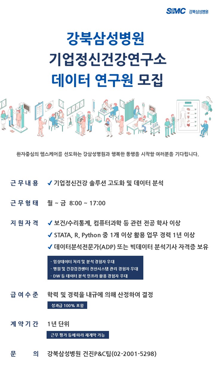 [채용]강북삼성병원 기업정신건강연구소 데이터 담당 연구원 채용공고
