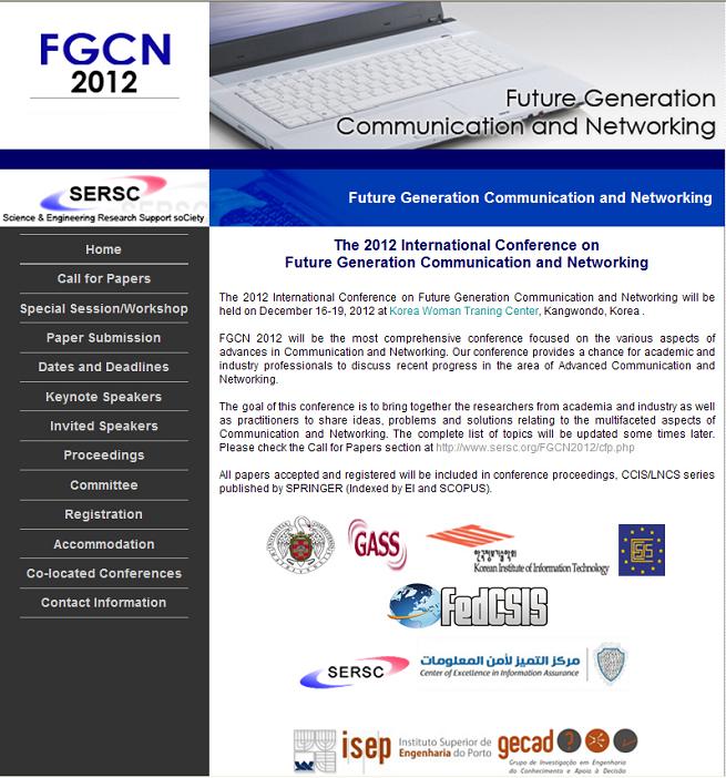 - 자세한 내용은 http://www.sersc.org/FGCN2012/index.php 참고하시고
