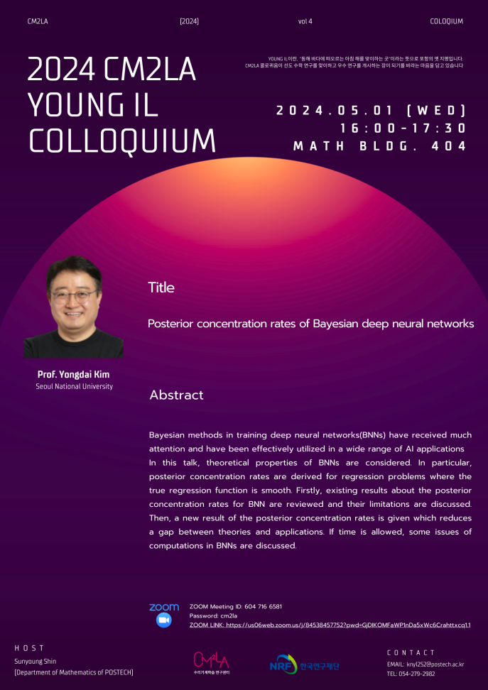 포항공과대학교 수리 기계학습 연구센터에서 영일 콜로퀴움을 진행합니다.