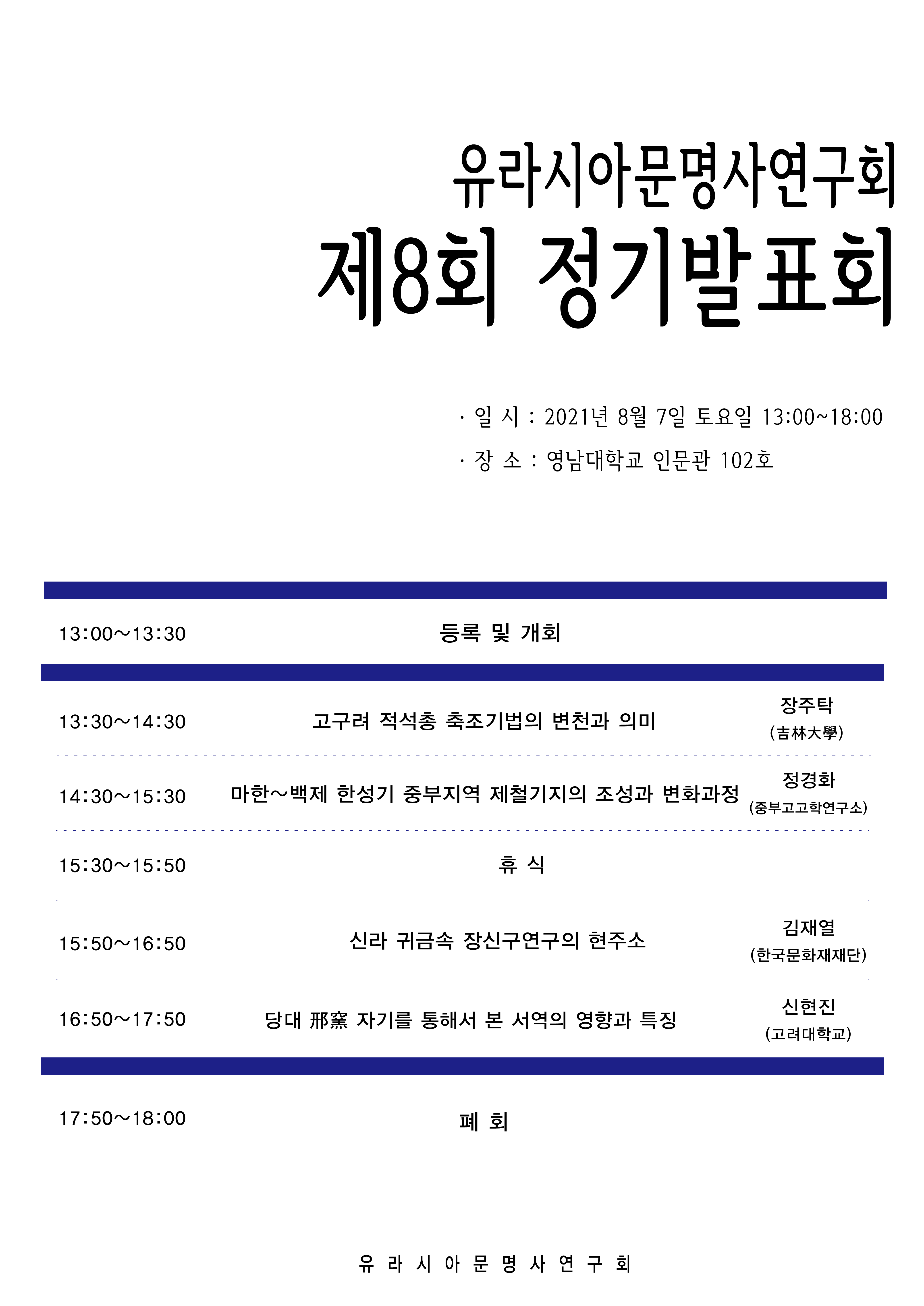 유라시아문명사연구회 제8회 정기발표회를 개최하고자합니다.