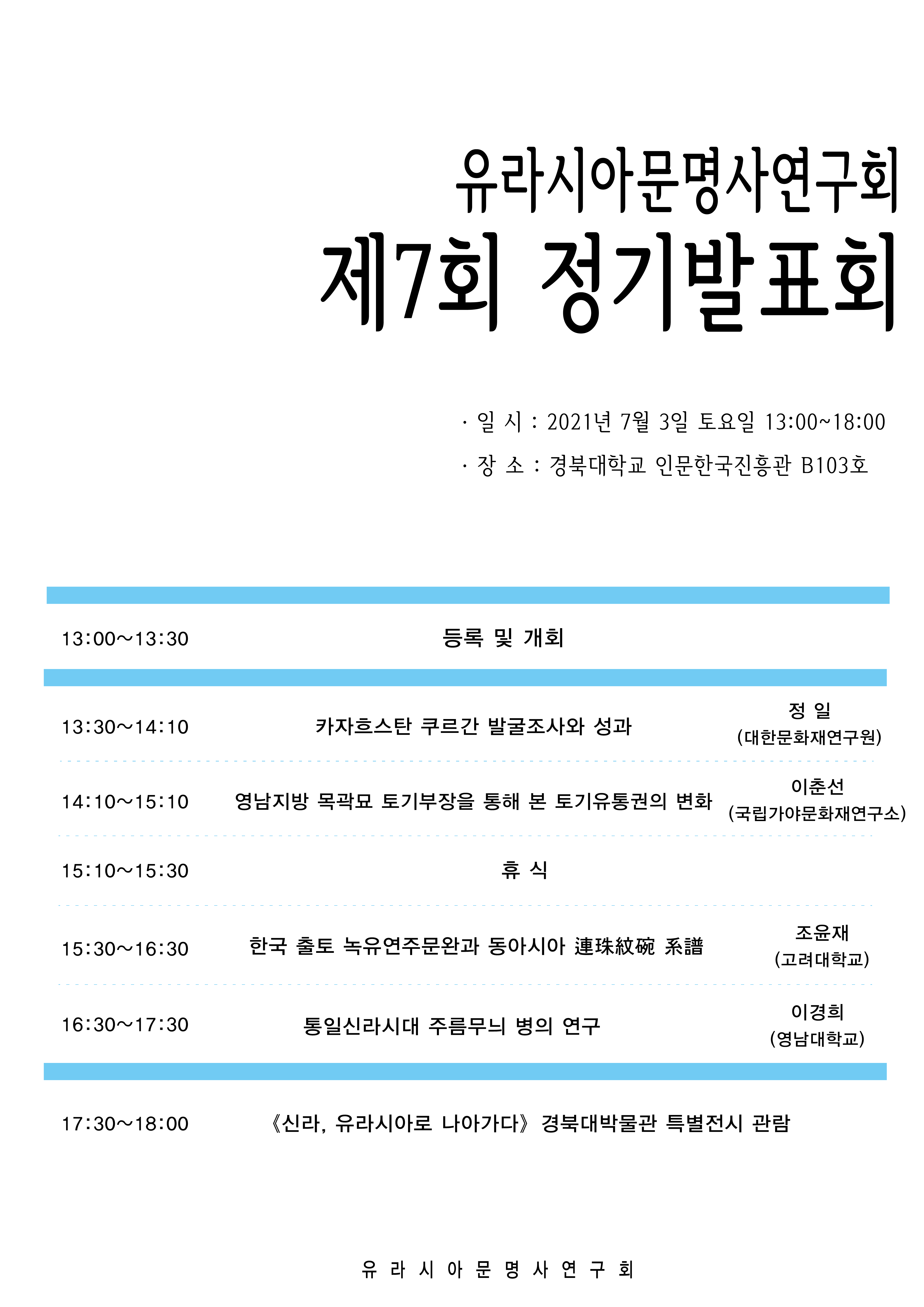 유라시아문명사연구회 제7회 정기발표회를 개최하고자합니다.