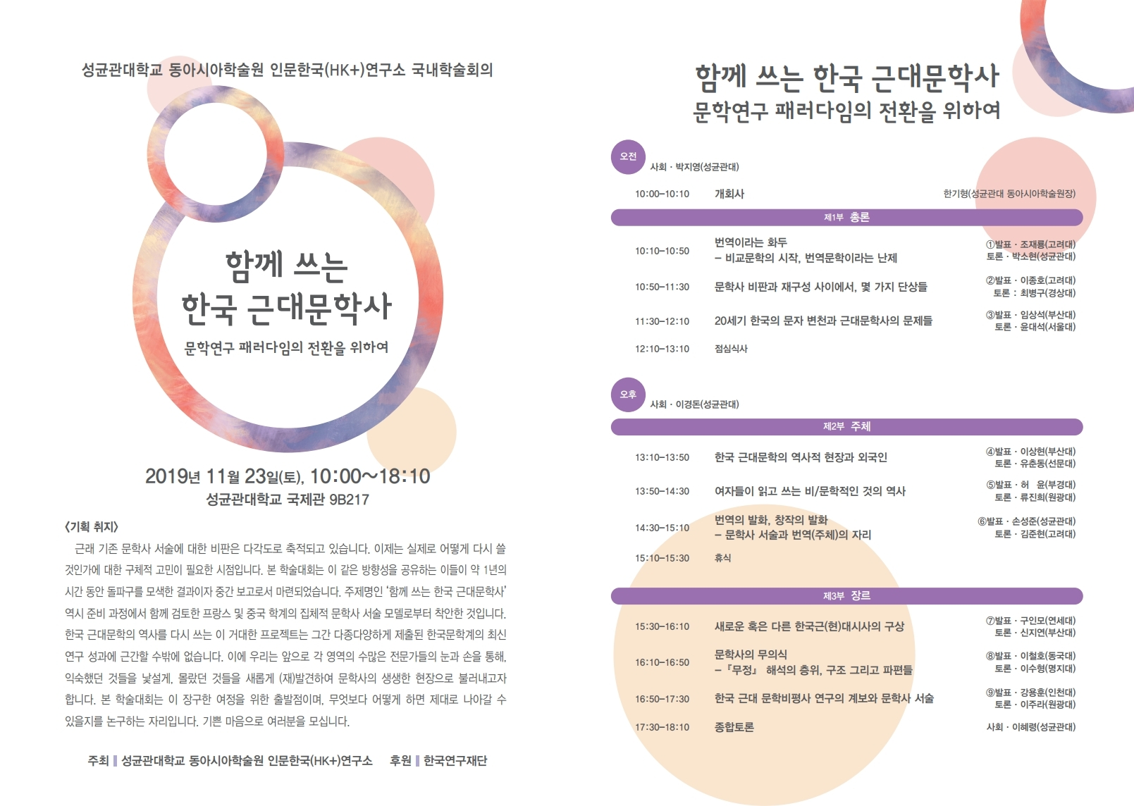 성균관대학교 동아시아학술원 <함께 쓰는 한국 근대문학사 -문학연구 패러다임의 전환을 위하여>