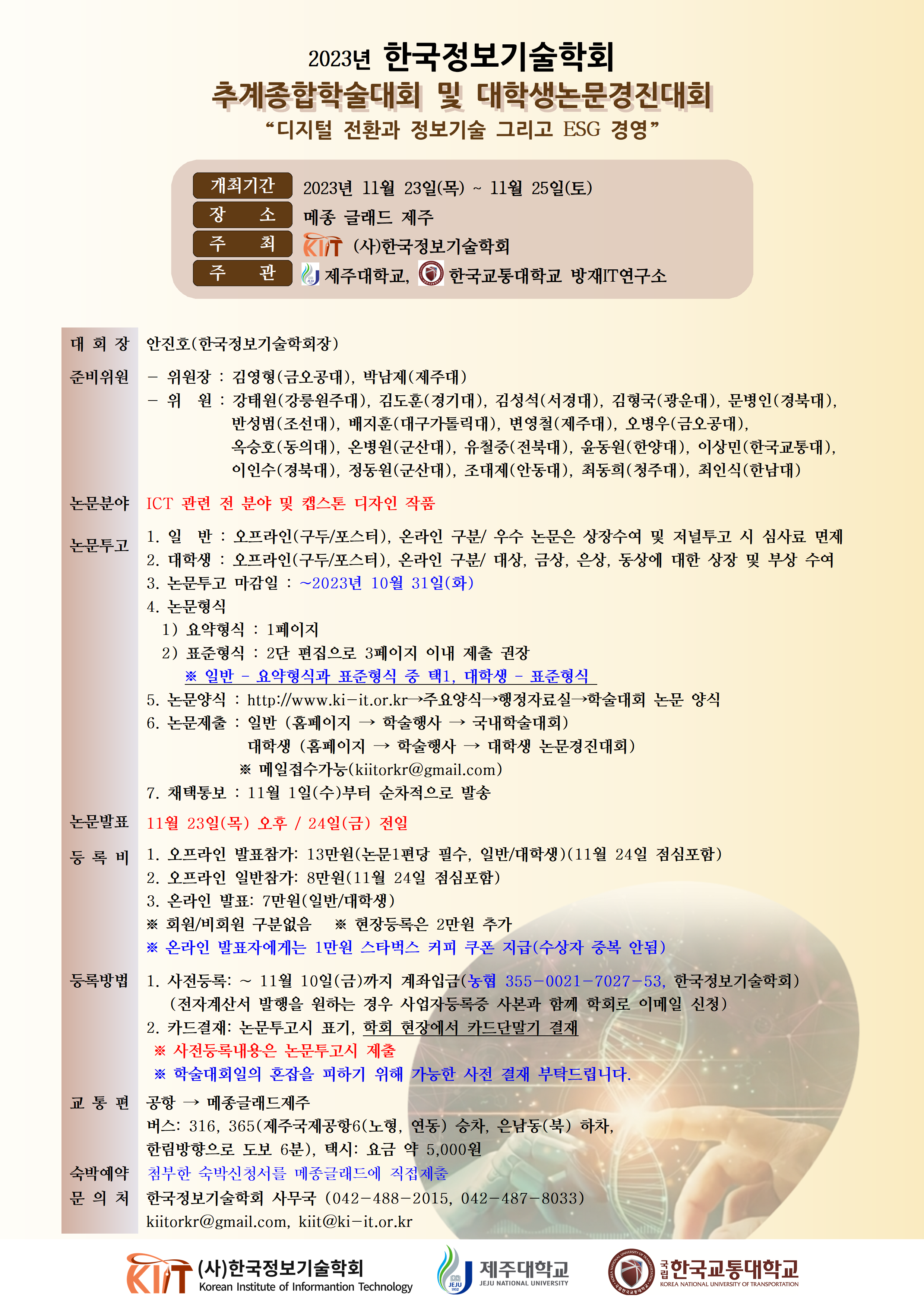 2023년 추계종합학술대회 및 대학생논문경진대회 온라인 발표자 url 안내드립니다