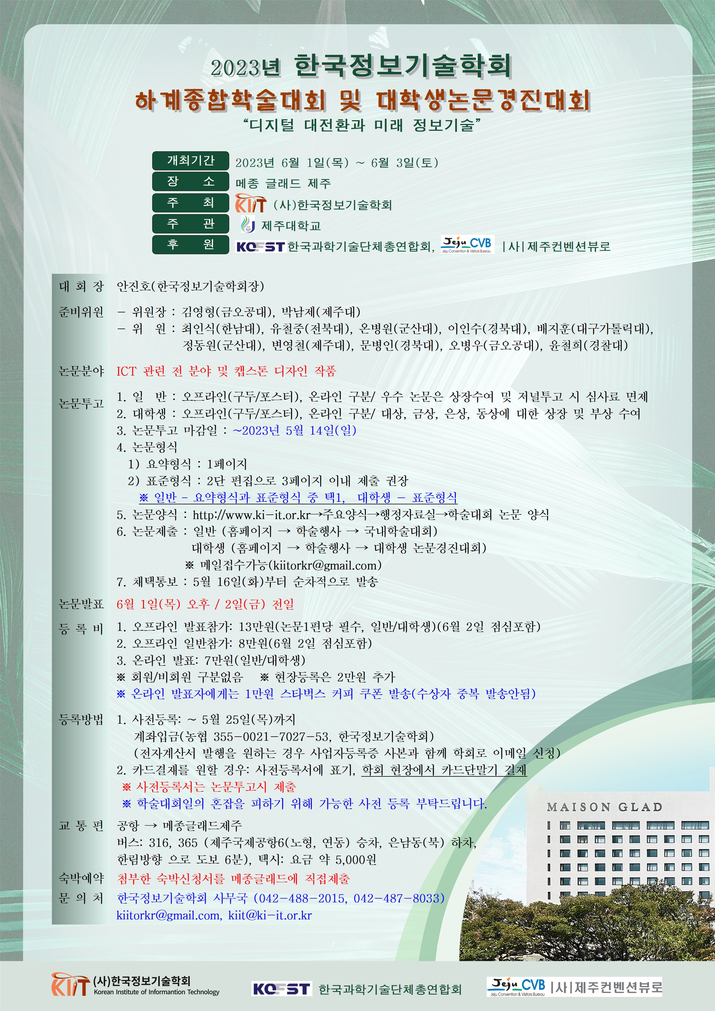 2023년 하계종합학술대회 및 대학생논문경진대회 안내_논문양식, 사전등록서, 숙박신청서 첨부