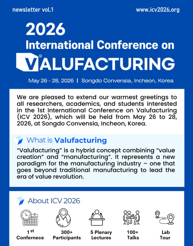 ㅇ 행사명 : 밸류팩처링 국제학술대회(ICV2026) 2026 International Conference on Valufacturing