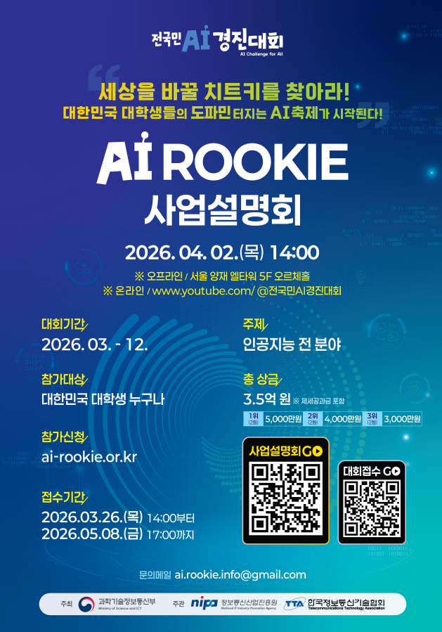 - 2026년 인공지능 루키 대회: 2026. 04. 02.(목) 14:00