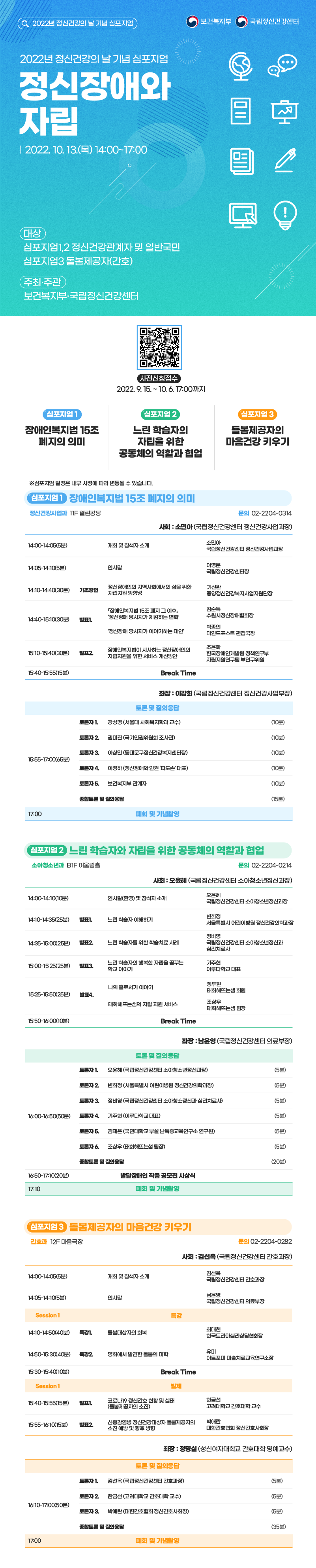 - 심포지엄 2 (소아청소년정신과): 느린학습자의 자립을 위한 공동체의 역할과 협업