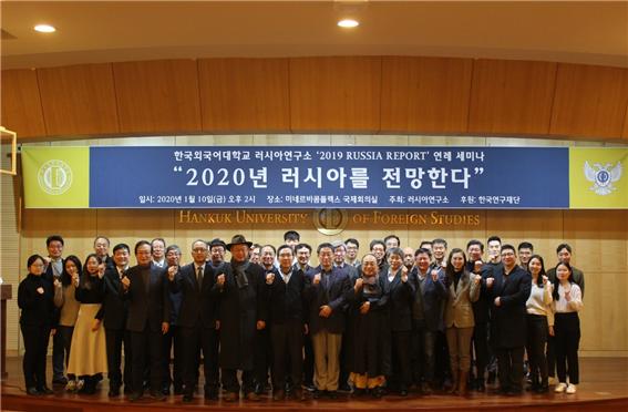 At this academic event, which began with the opening remarks by Sang-yong Pyo, Director of the Russian Institute, and the congratulatory speech by Professor Hong-seop Lee of National Defense University, the presenters evaluated Russia in 2019 and predicted 2020. In the first meeting, which was moderated by Seong-Hoon Jee, a professor of Korean language at Hankuk University of Foreign Studies, in-depth discussions were held on domestic politics (Se-Ho Jang), economy (Jong-Moon Lee), and external relations (Duk-Jun Jang). At the second meeting, moderated by Professor Kim Soo-hwan, there was a wide discussion on military security (Kim Gyu-cheol), Korea-Russia relations (Hyun Seung-soo), and social culture (Ra Seung-do). In particular, Rha Seung-do, HK research professor at the Russian Institute, presented remarkable phenomena in the Russian social and cultural field last year under the theme of 'Ahead of a new decade: Searching for answers in the past'. The year 2020 was designated as 'the year'.