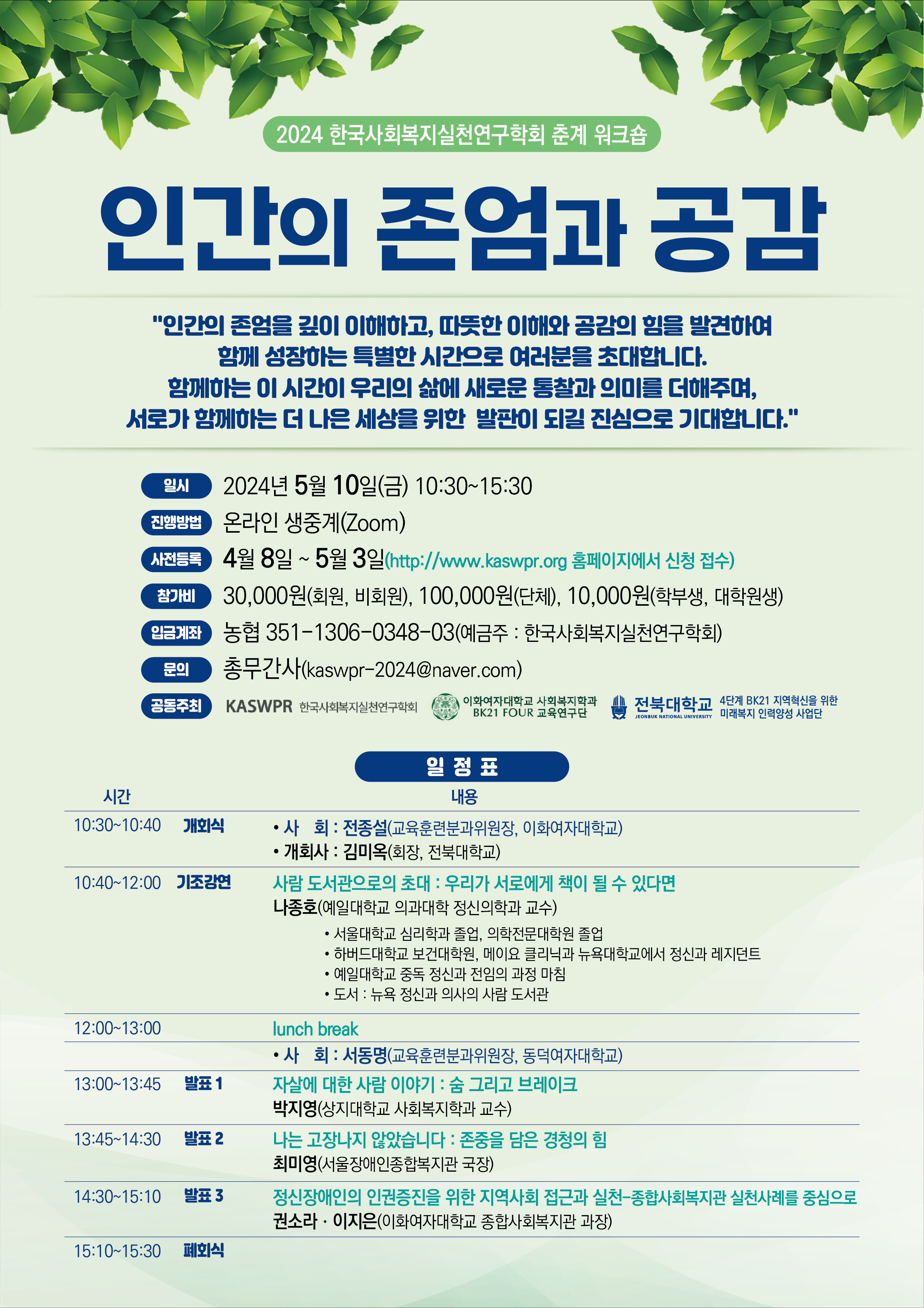 가. 행 사 명 : 2024 한국사회복지실천연구학회 춘계 워크숍