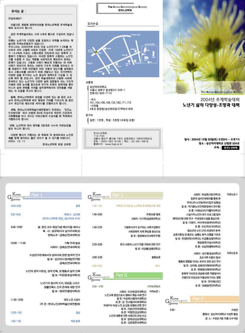 노년학회 2004년 추계학술대회가 아래와 같이 열립니다.