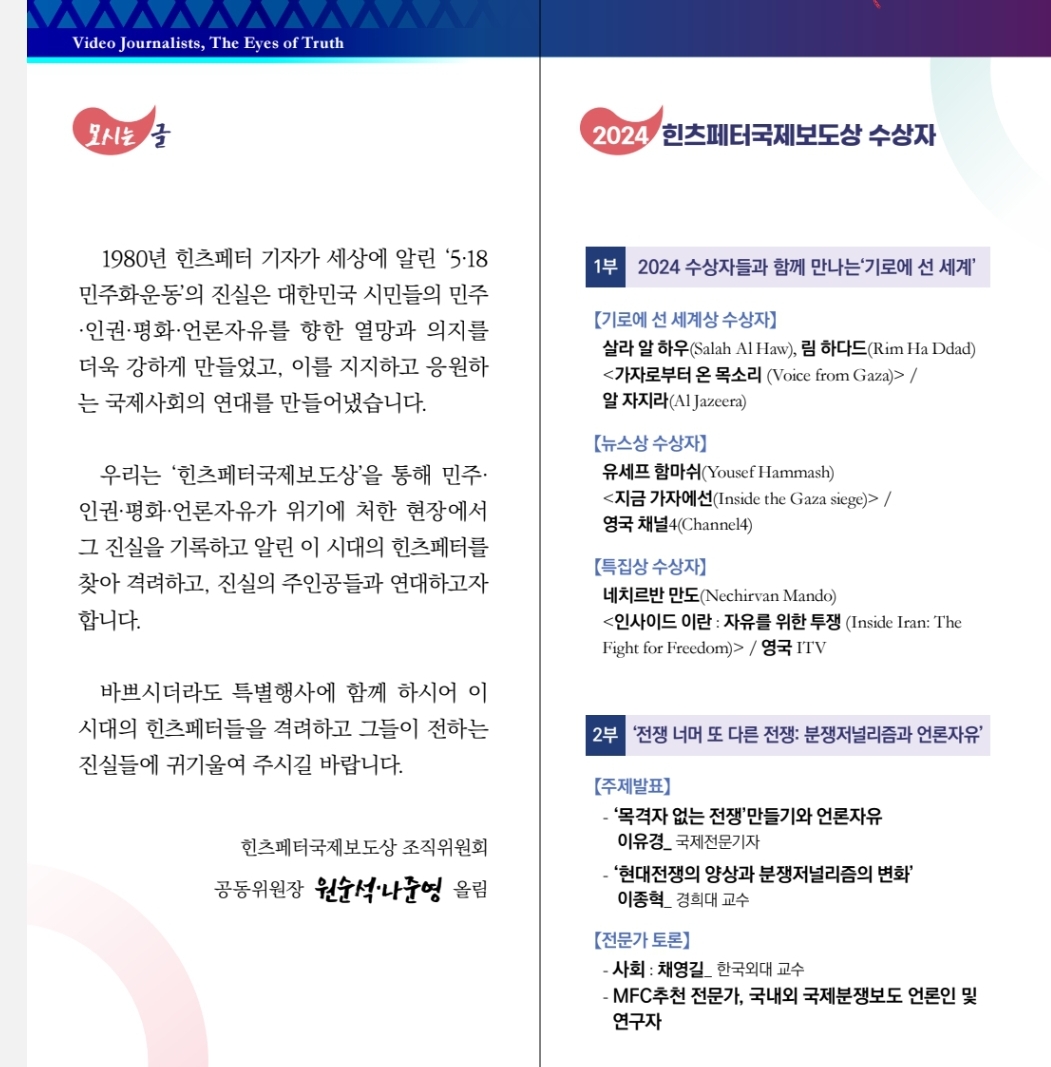 [홍보협조] 힌츠페터국제보도상 특별행사 개최 안내
