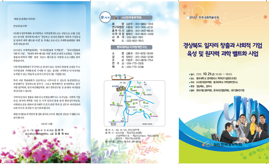공동으로 주최하는 2011년 추계학술대회 초대장입니다.