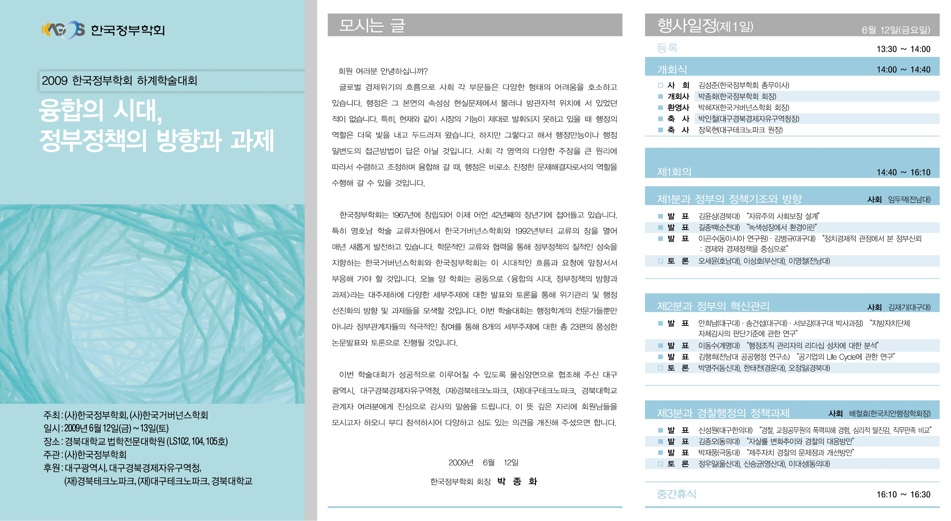 - 2009년 한국정부학회 하계학술대회를 다음과 같이 개최합니다.