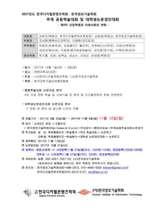 2017 추계공동학술대회 및 대학생논문경진대회(제 4차 산업혁명과 미래사회의 변화)