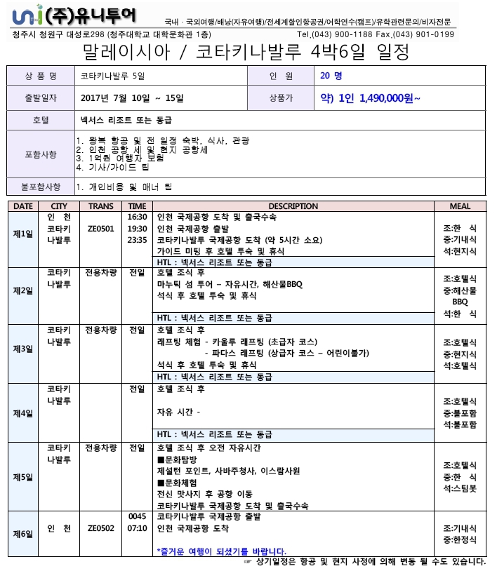 문의사항이 있으시면, (주)유니투어(043-900-1188)로 문의하시기 바랍니다.