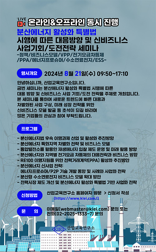 [산업교육연구소]분산에너지 활성화 특별법 시행에 따른 대응방향 및 신비즈니스 사업기회/도전전략 세미나