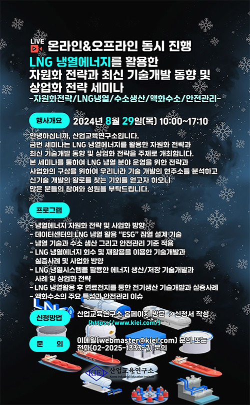 [산업교육연구소]LNG 냉열에너지를 활용한 자원화 전략과 최신 기술개발 동향 및 상업화 전략 세미나
