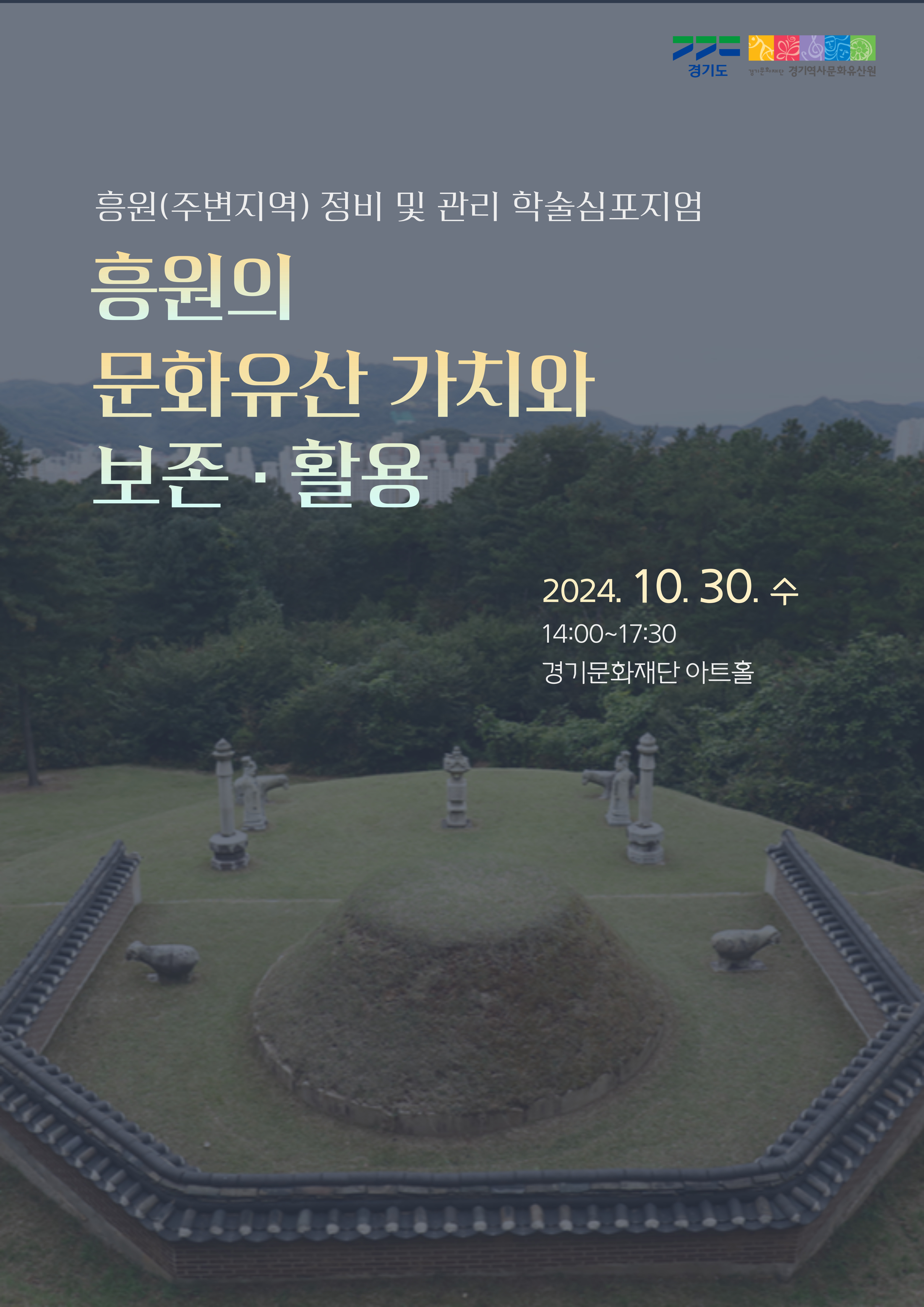 경기문화재단 경기역사문화유산원은흥원의 문화유산 가치와 보존활용을 주제로 학술심포지엄을 개최합니다.