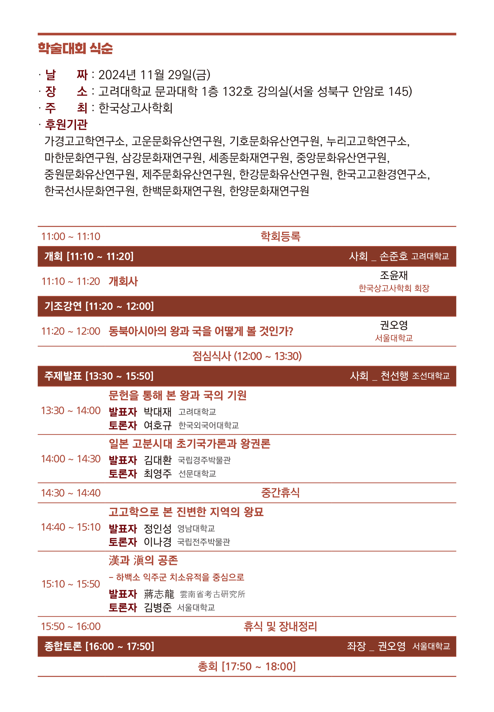 한국상고사학회 제58회 학술대회 <'王'과 '國'의 上古史> 개최