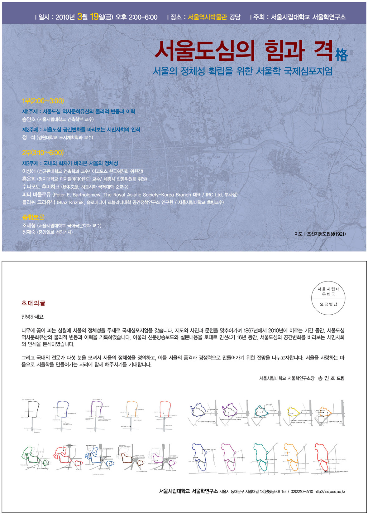 서울시립대학교 서울학연구소장 송 인 호 드림