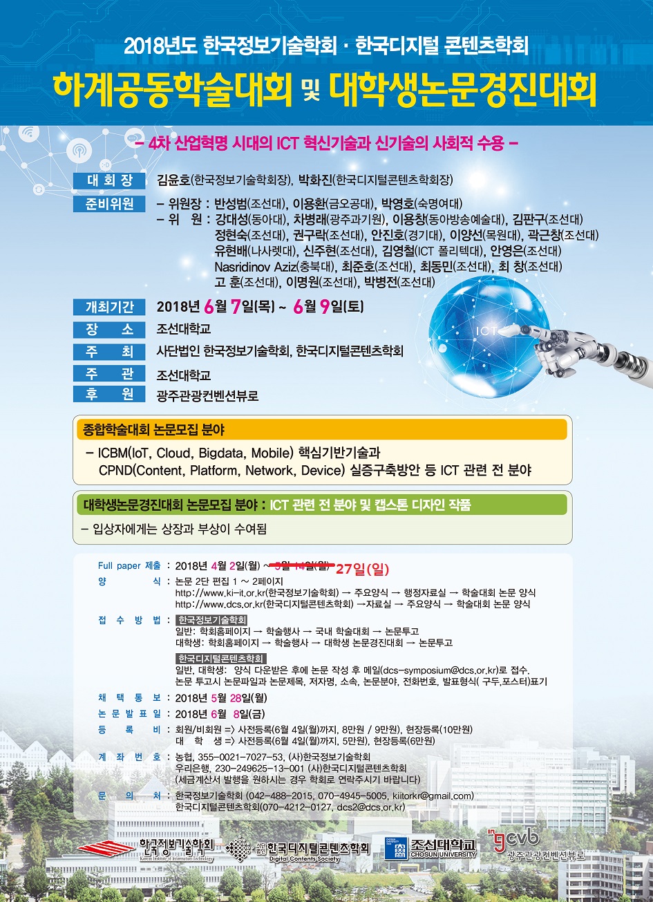 [제출기한연기:27일(일)]2018년도 하계공동학술대회 및 대학생논문경진대회(4차 산업혁명 시대의 ICT 혁신기술과 신기술의 사회적 수용)