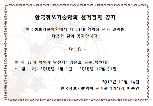 제 11대 학회장 선거결과 공지