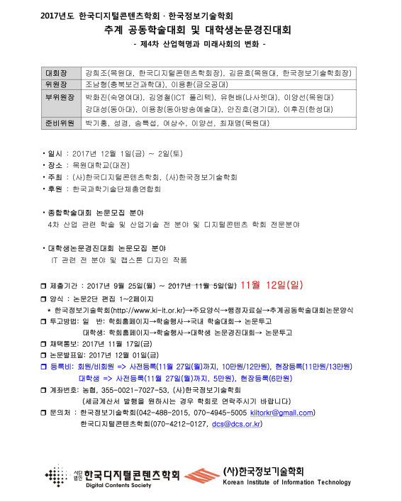 [제출기한연기:12일(일)]2017 추계공동학술대회 및 대학생논문경진대회(제 4차 산업혁명과 미래사회의 변화)