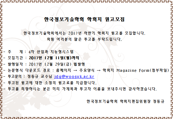 2017년 12월 학회지 원고 모집 공고