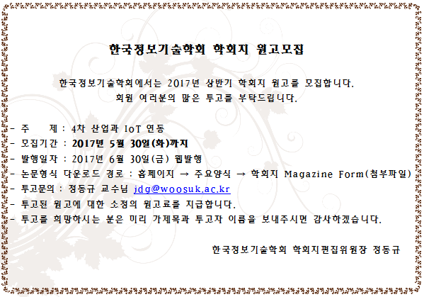 2017년 6월 학회지 원고 모집 공고
