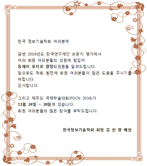 [한국연구재단] 한국정보기술학회 학술지 등재 유지
