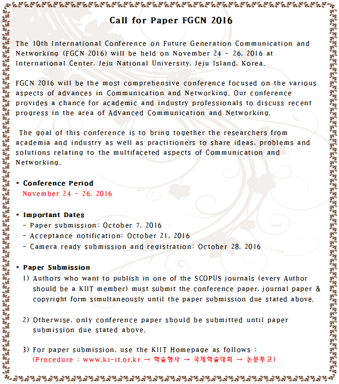 FGCN 2016: International Conference (제주, 11월24~26일)
