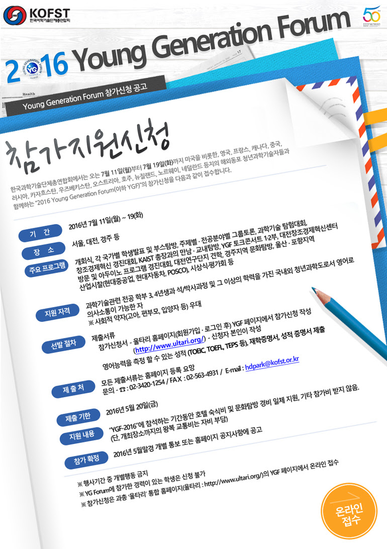 2016 한민족청년과학도포럼(Young Generation Forum, YGF) 지원신청 안내