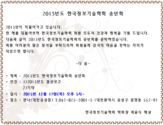 2016년 한국정보기술학회 신년교례회 및 임시종회 안내