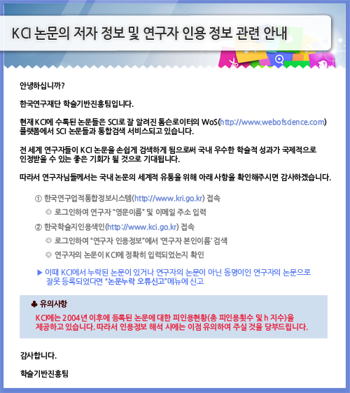 KCI 논문의 저자 정보 및 연구자 인용 정보관련 안내