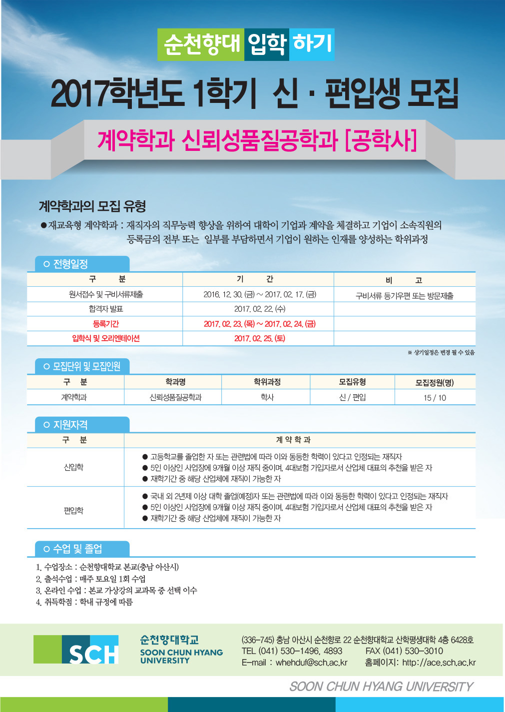 [공지] 순천향대학교 계약학과 신뢰성품질공학과[공학사] 2017학년도 1학기 신.편입생 모집