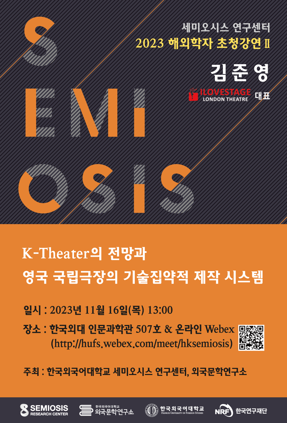 ■ 장    소: 한국외대 인문과학관 507호 & 온라인 Webex (링크https://hufs.webex.com/meet/hksemiosis)