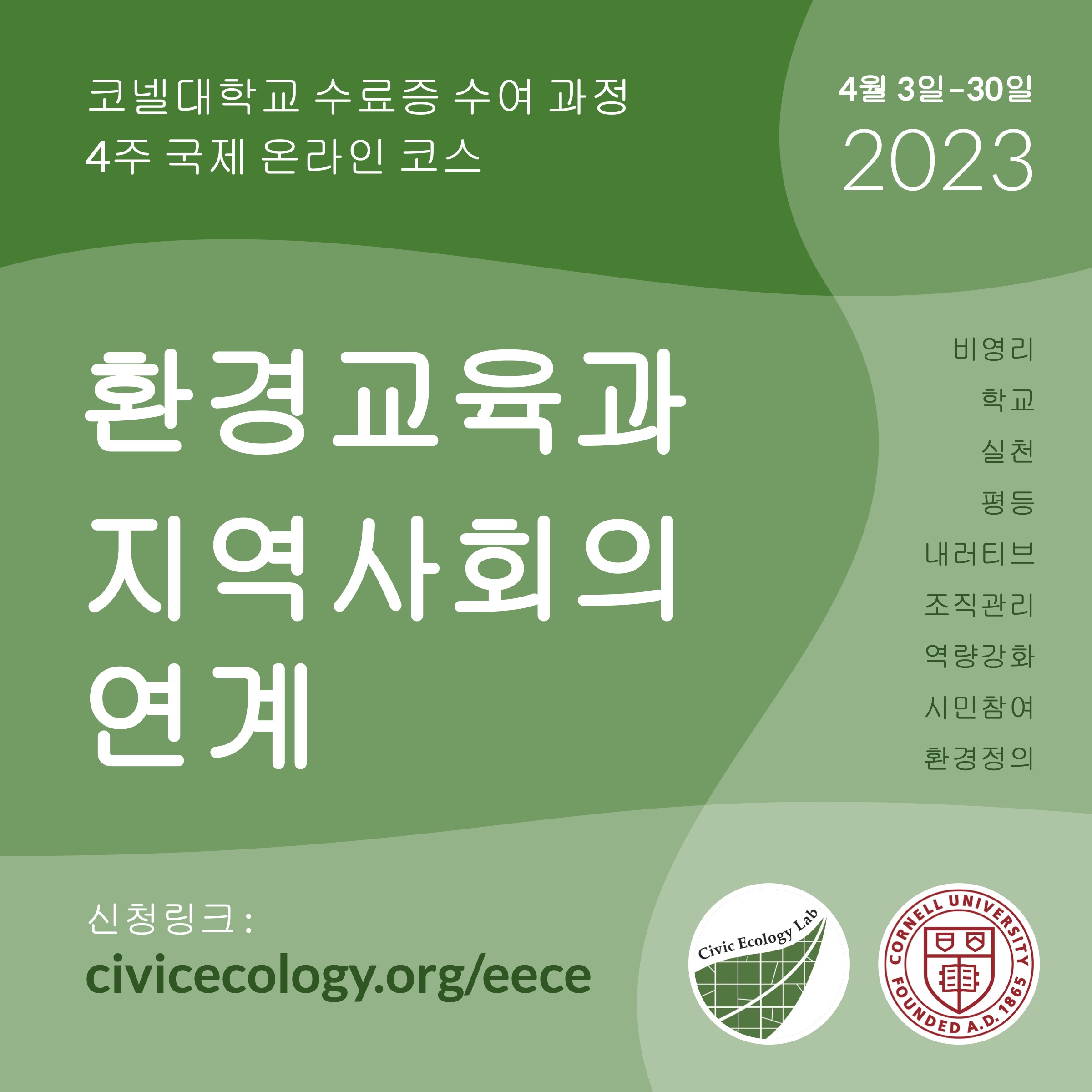• 강좌명: 환경교육과 지역사회의 연계 (Environmental Education & Community Engagement)