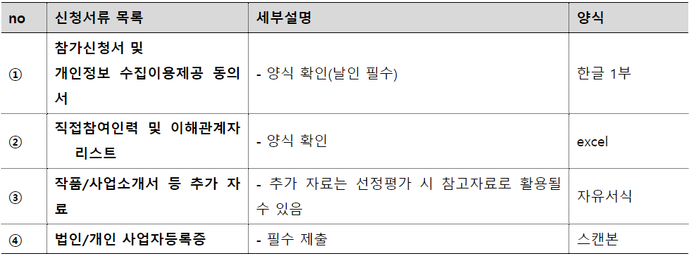 - 선발절차참가 신청 서류 기반 서면 평가 진행, 70점 이상 작품 중 고득점 순 선발