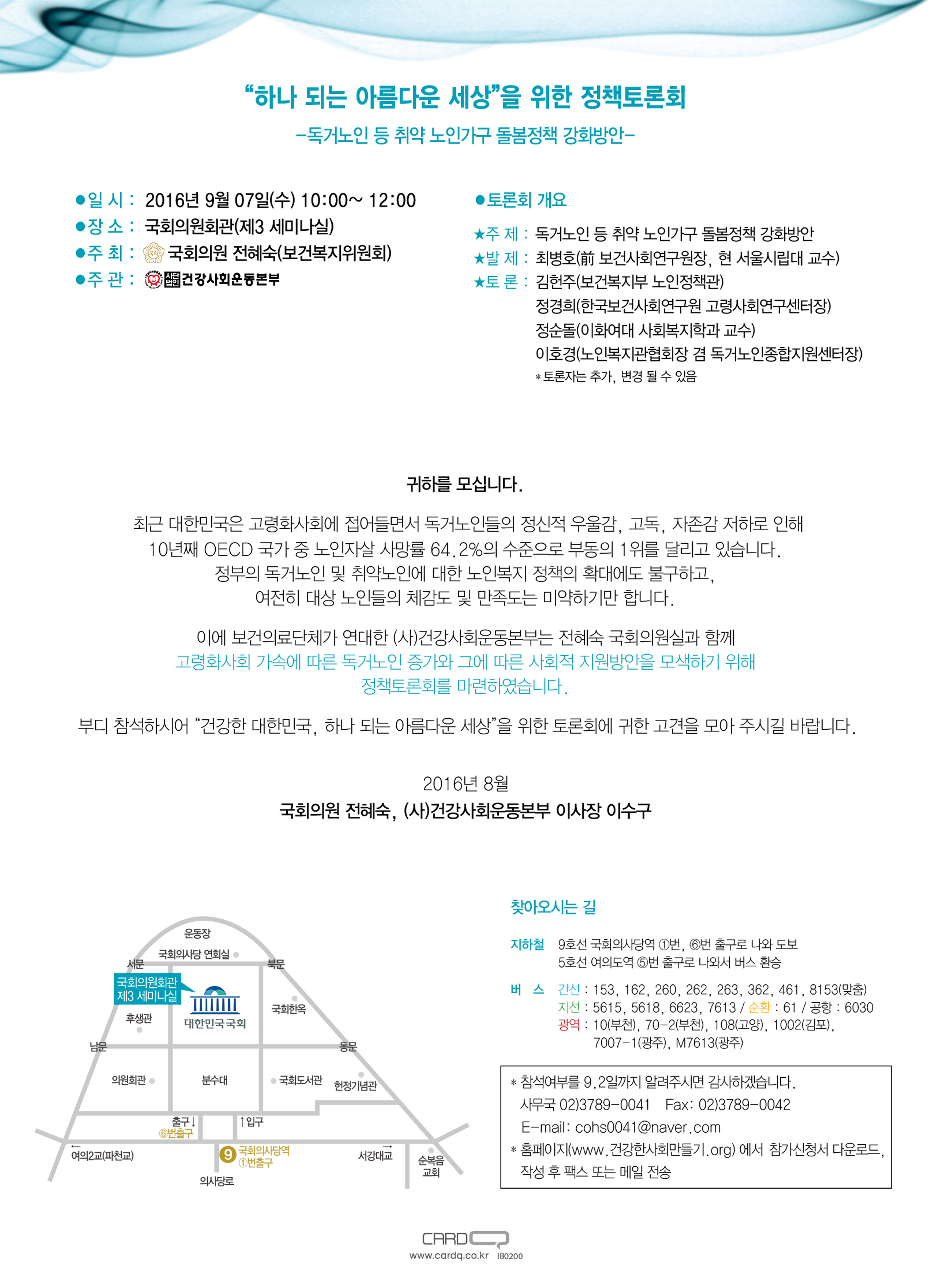 국회포럼 일자: 2016년 9월 22일(목) 오후 2시 30분~2시 40분