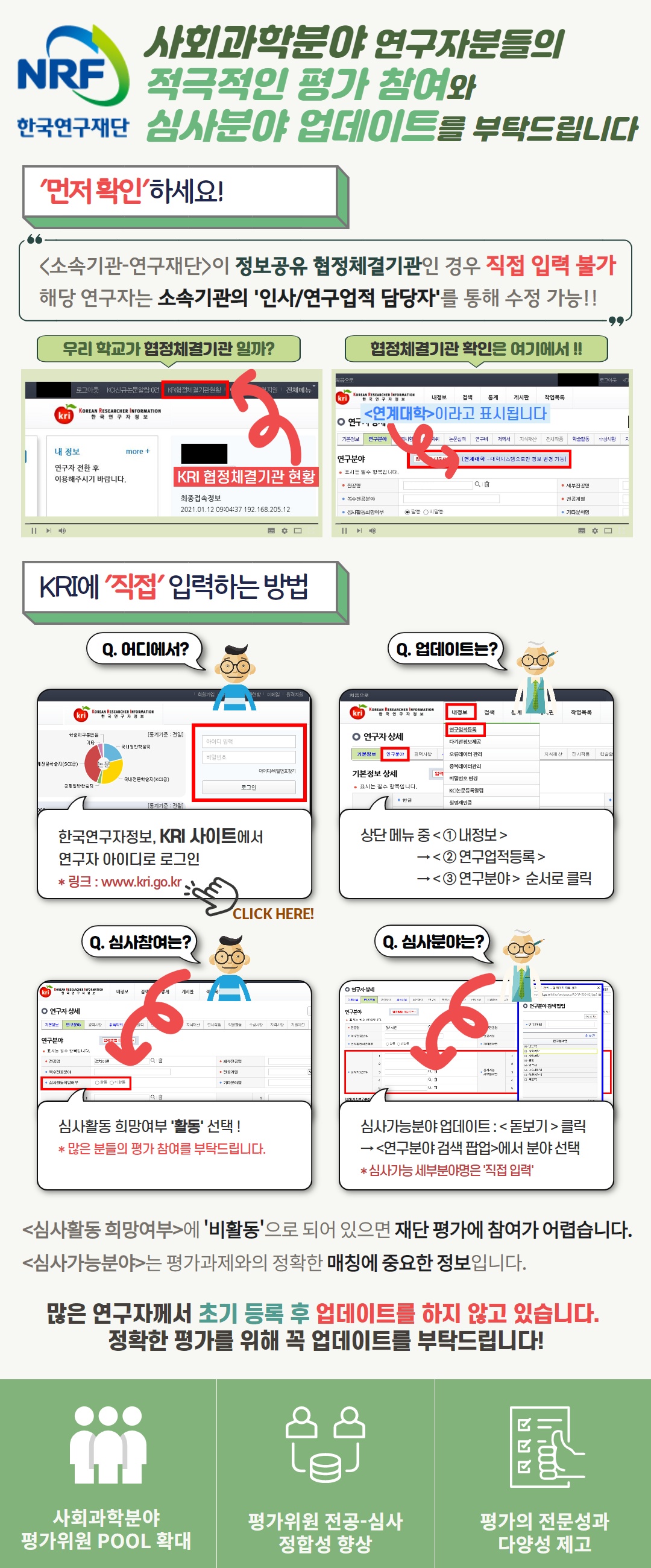 [한국연구재단 사회과학단] 사회과학분야 평가위원 Pool 확대를 위한 KRI 정보 업데이트 홍보 및 수정사항 안내