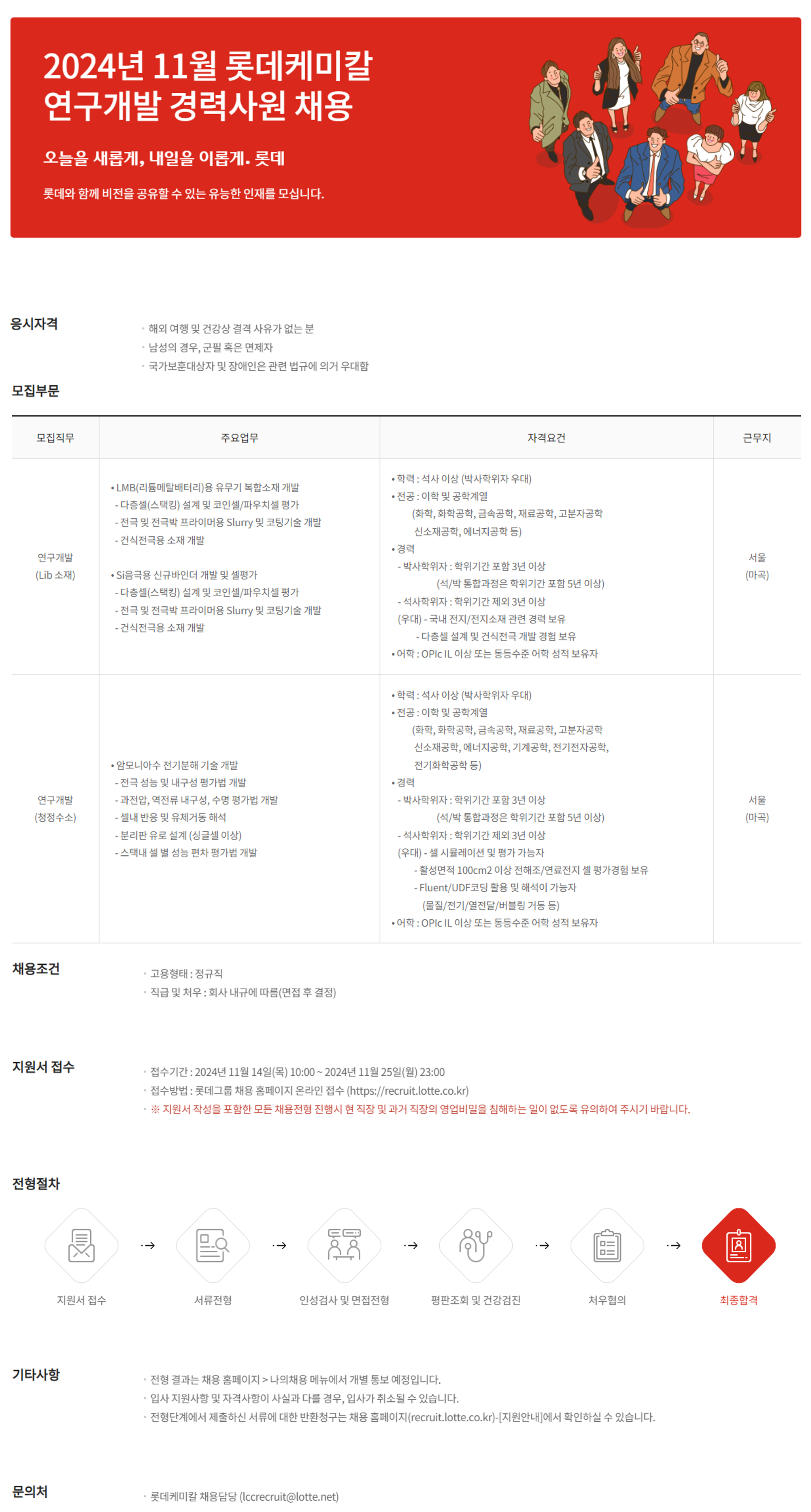 [롯데케미칼] 채용공고 안내