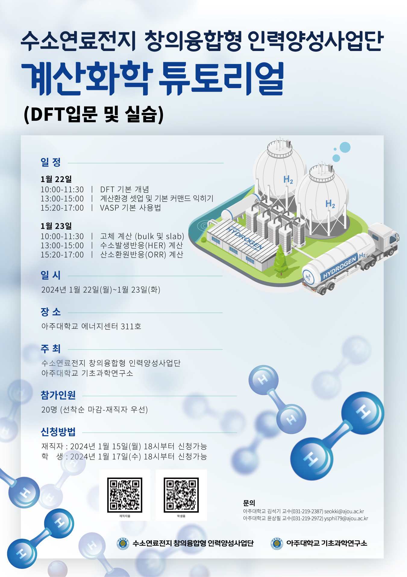 [수소연료전지창의융합형인력양성사업단] 계산화학 튜토리얼 개최
