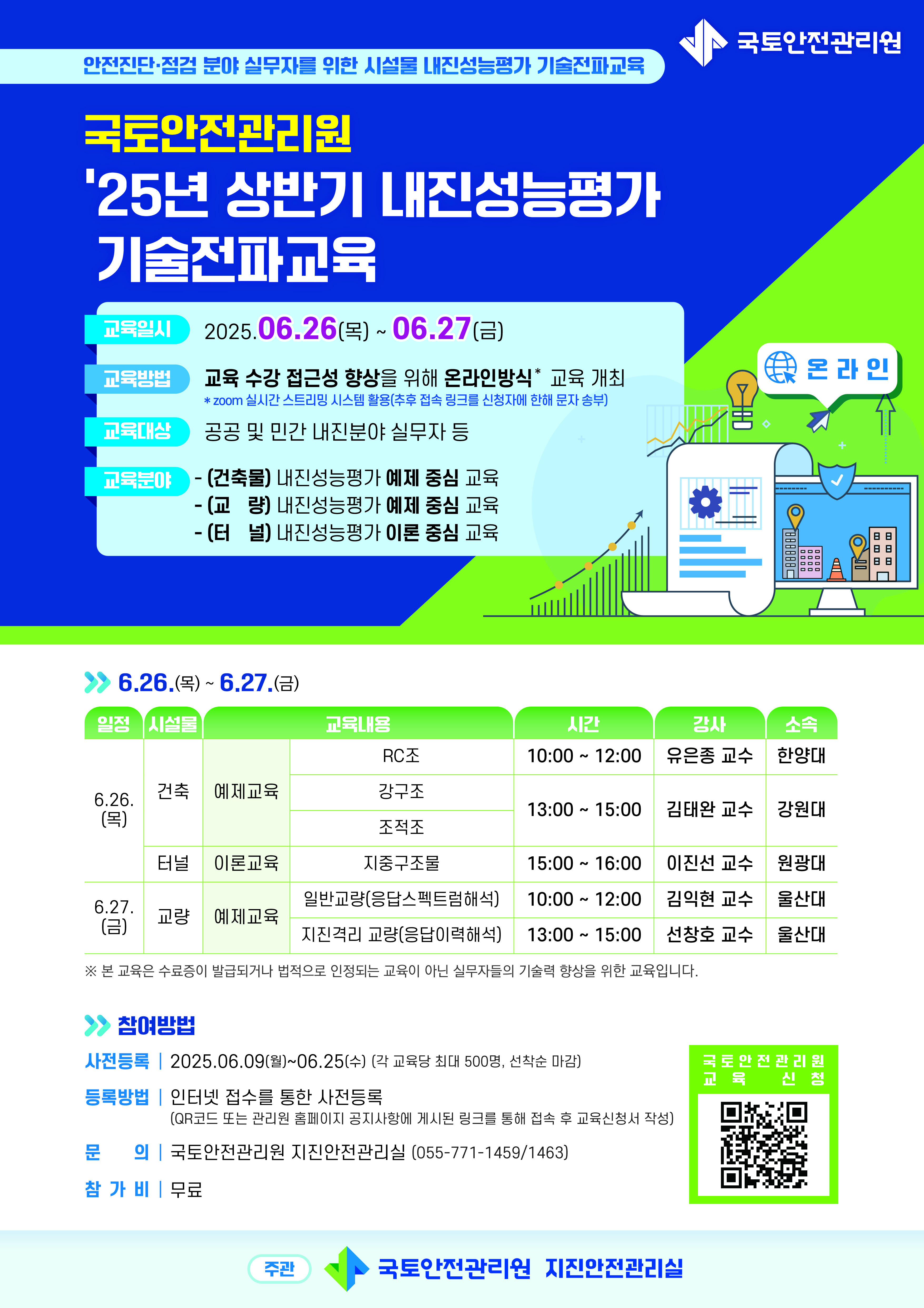 붙임. 2025년 국토안전관리원 상반기 내진성능평가 기술전파교육(온라인) 홍보 포스터.jpg